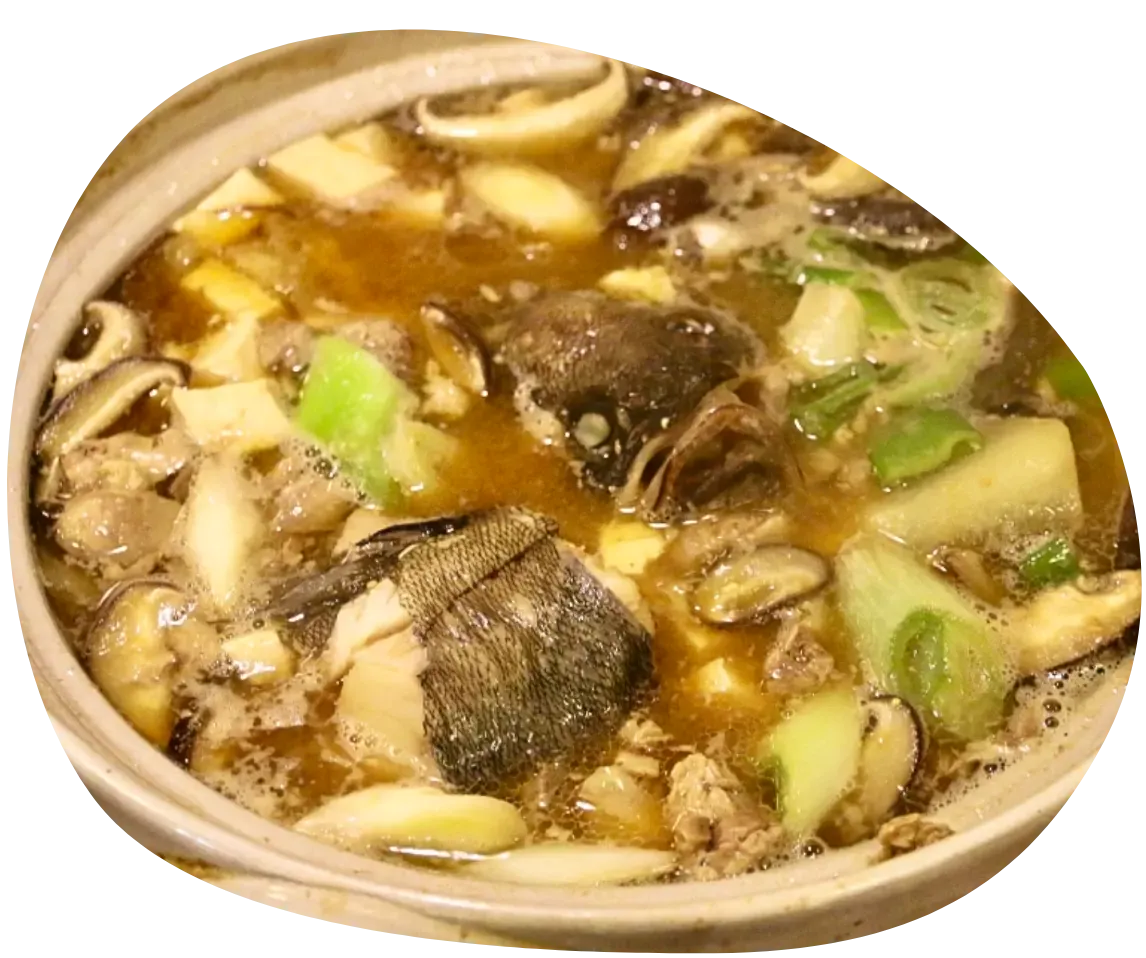 “七つ道具”と呼ばれる「肝、ひれ、身、えら、ほお肉、胃袋、皮」、そして骨も入れて。