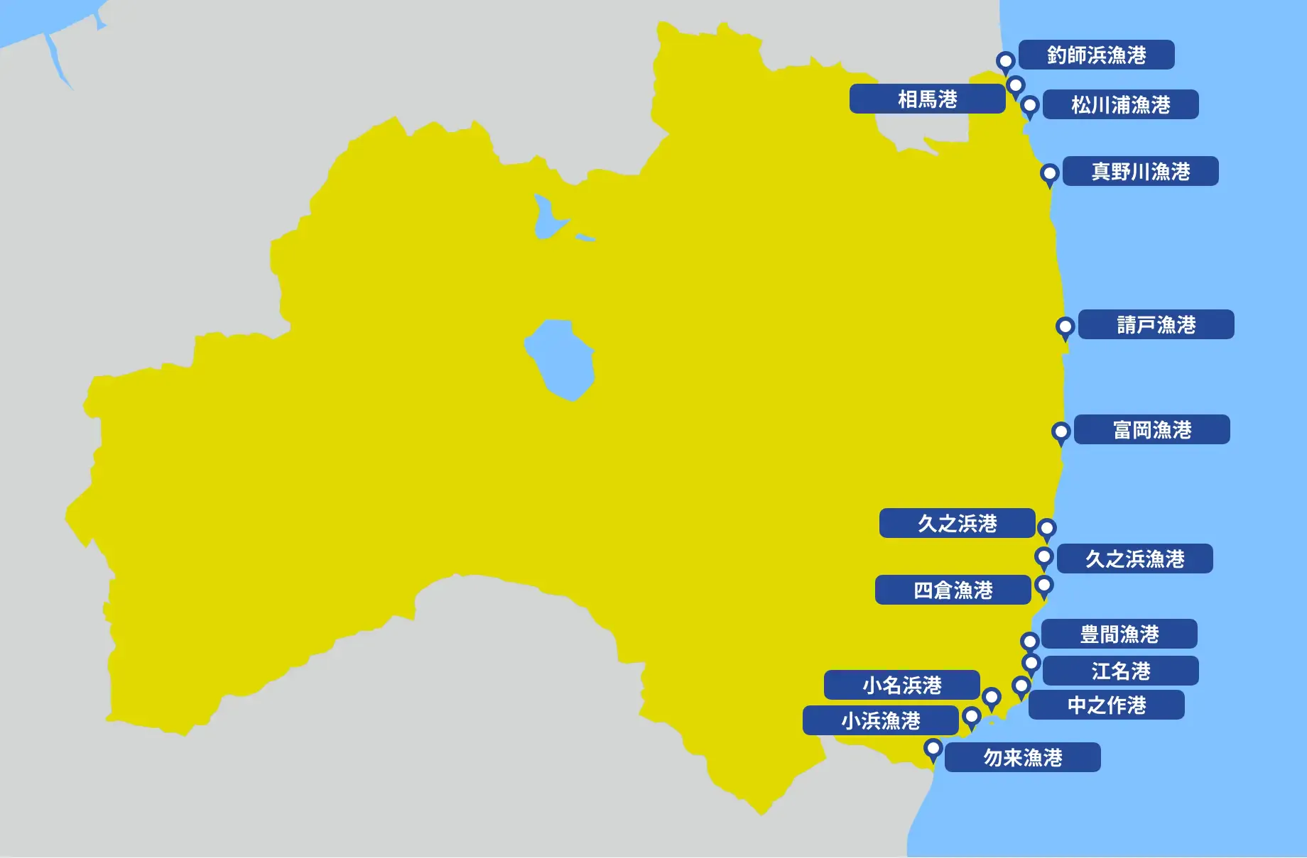 おいSea「常磐もの」の中心地となる漁港は、いわき市の小名浜港や相馬市の相馬港、松川浦漁港など。