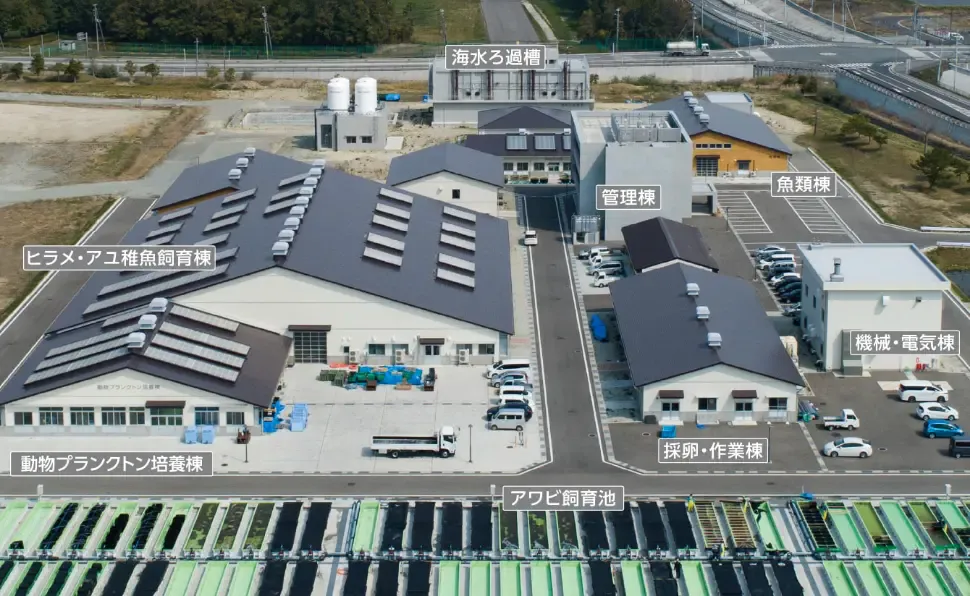 | 生産能力 | ヒラメ / 100万尾 アユ / 300万尾 アワビ / 100万個 |